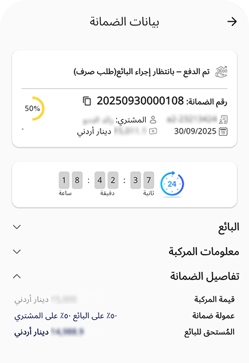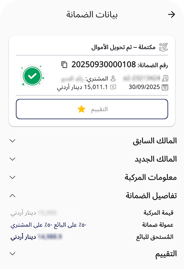 يعتمد أمان ضمانة على التحقق الرسمي من الجهات الحكومية وتحت إشراف البنك المركزي الأردني. تُحوَّل المدفوعات فورًا بمجرد تأكيد نقل الملكية رسميًا.